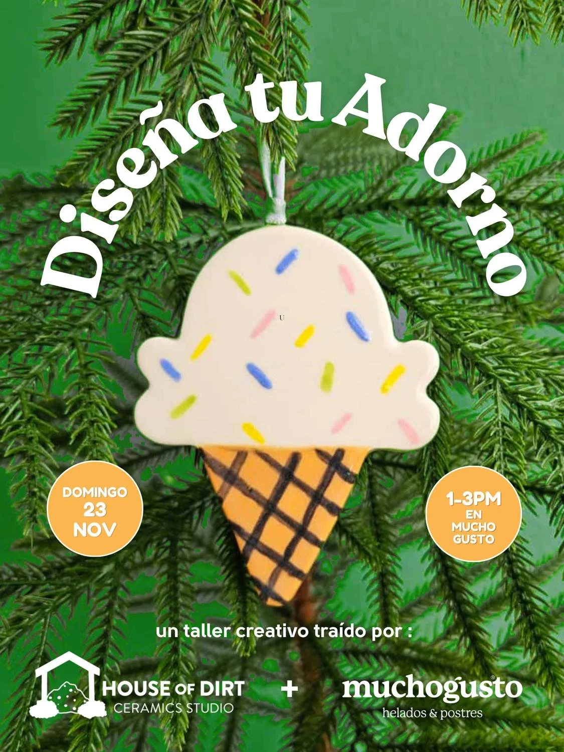 Each participant will receive an helado (ice cream) shaped ornament and can choose up to 5 additional ornaments (all made by us, with love) to decorate using a fun selection of 14 different colors. The design is completely up to you! After the workshop, we will put a clear glaze on your ornaments and fire them for you. They will be ready for pick up at Mucho Gusto within 1-2 weeks, just in time to put on your tree at home or give as a gift to someone special.